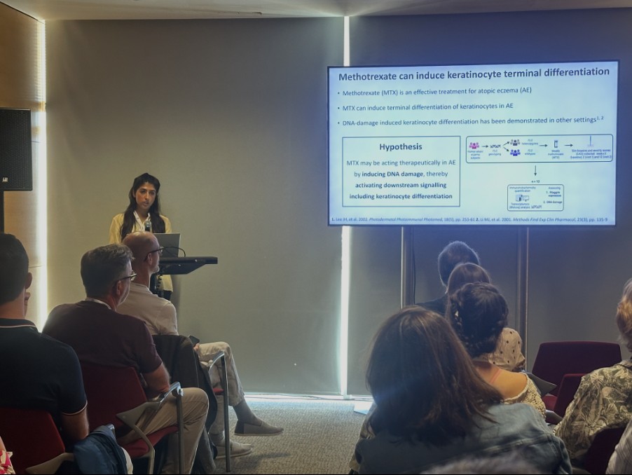 Our dermatology research groups were well represented at this annual meeting which celebrates high-quality dermatology research from across Europe. Dr Ashley Rider presented his work titled “Identification of expression quantitative trait loci with differential effects in the psoriasis transcriptome”, for which he was awarded a poster presentation prize. Dr Amaani Hussain presented updates of a study exploring the mechanisms of methotrexate in the management of atopic eczema.